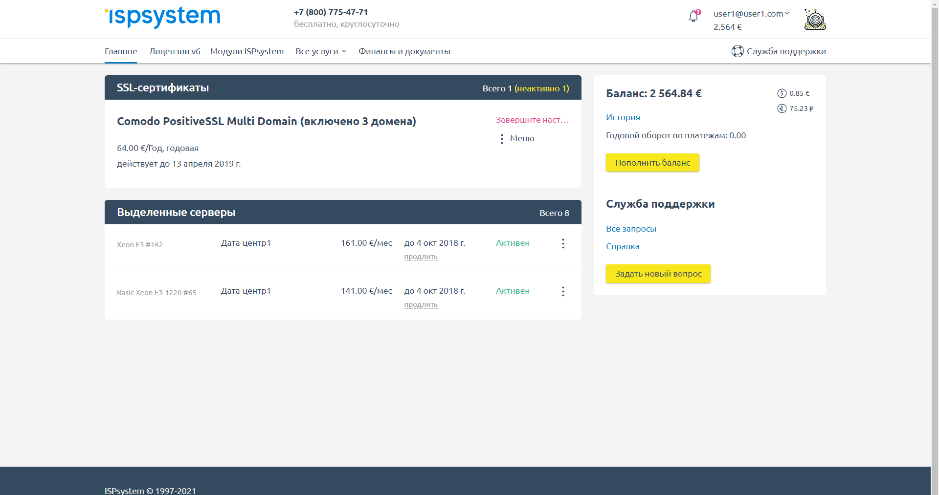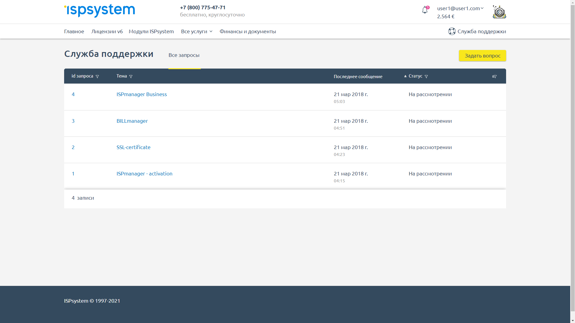 Встроенная тикет система позволяет осуществлять поддержку пользователей.