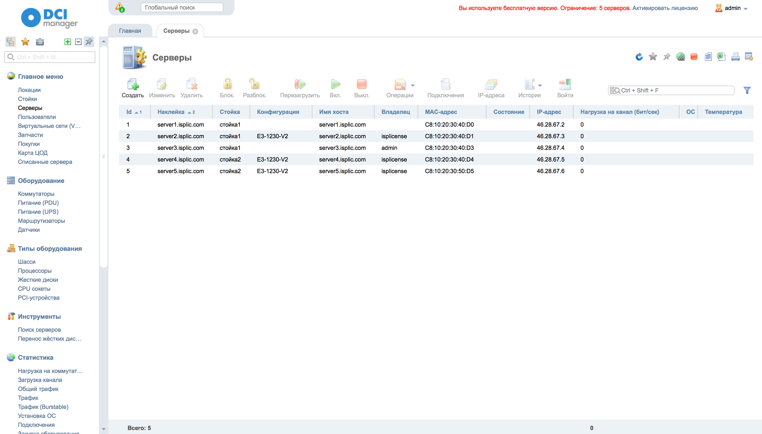 DCImanager позволяет автоматизировать продажу и управление выделенными серверами с помощью интеграции с другими продуктами ISPsystem