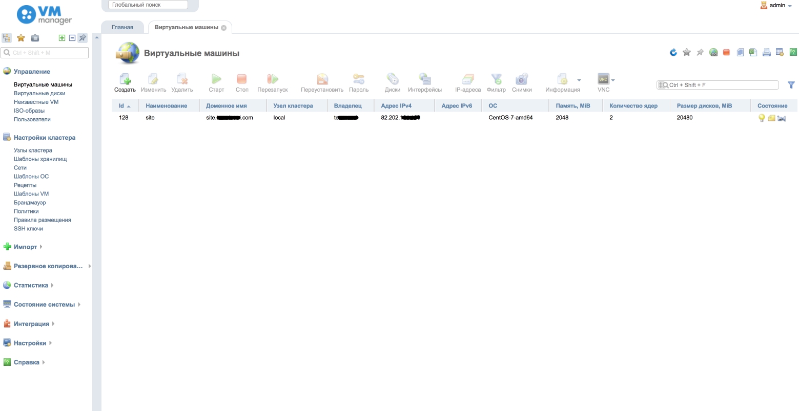 VMmanager – это набор решений для управления виртуализацией, используя технологии OpenVZ и KVM. Решение VMmanager позволяет настроить отказоустойчивый кластер виртуальных машин с поддержкой живой миграции между нодами.
